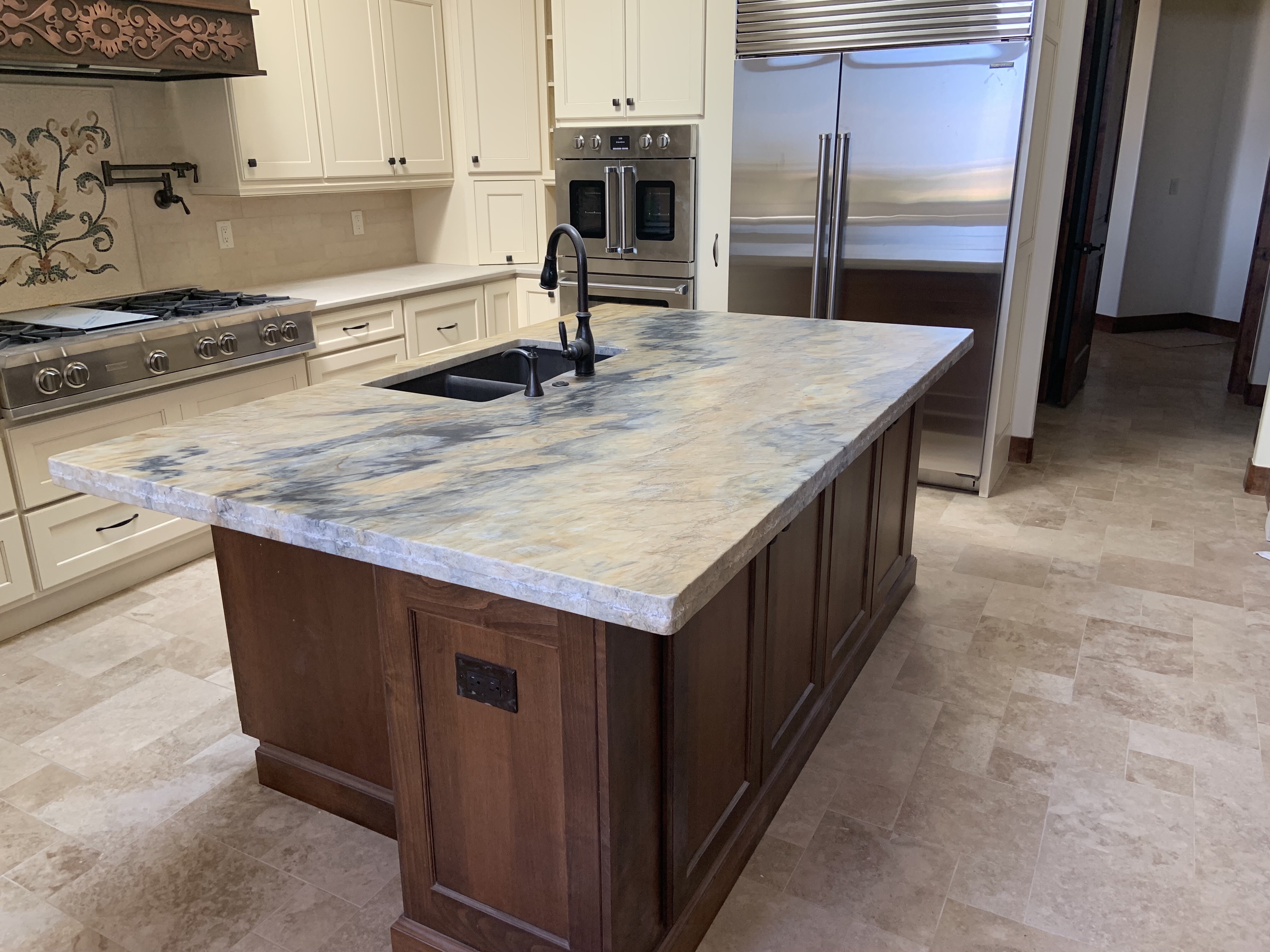 The final details involved getting our vent hood installed in the kitchen, getting the pantry, garage, and closet systems in place and getting the stone detail finished around the great room and bar arches.