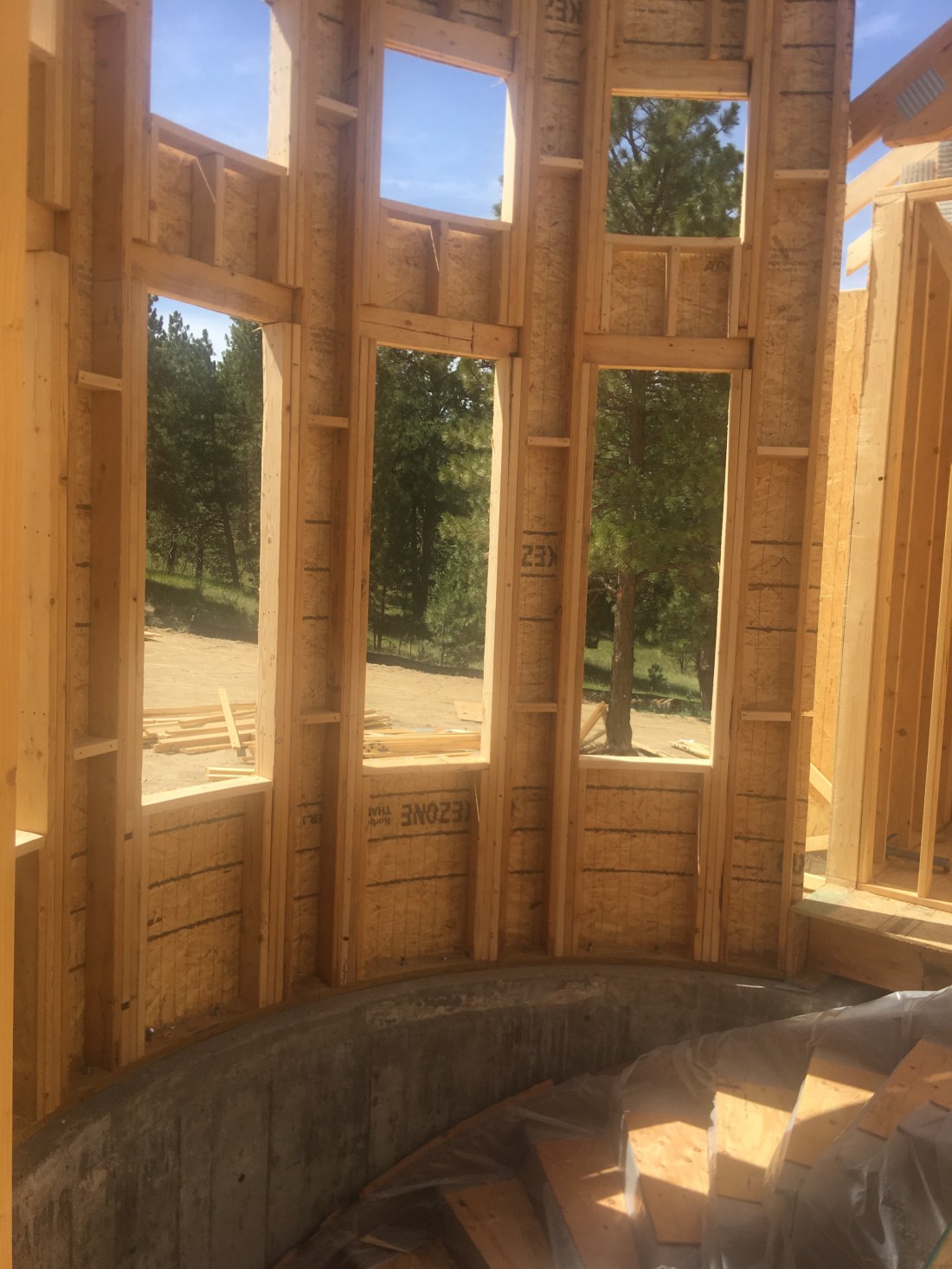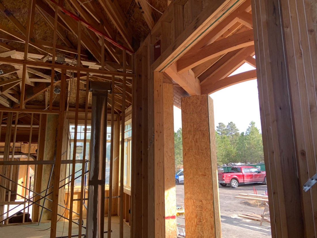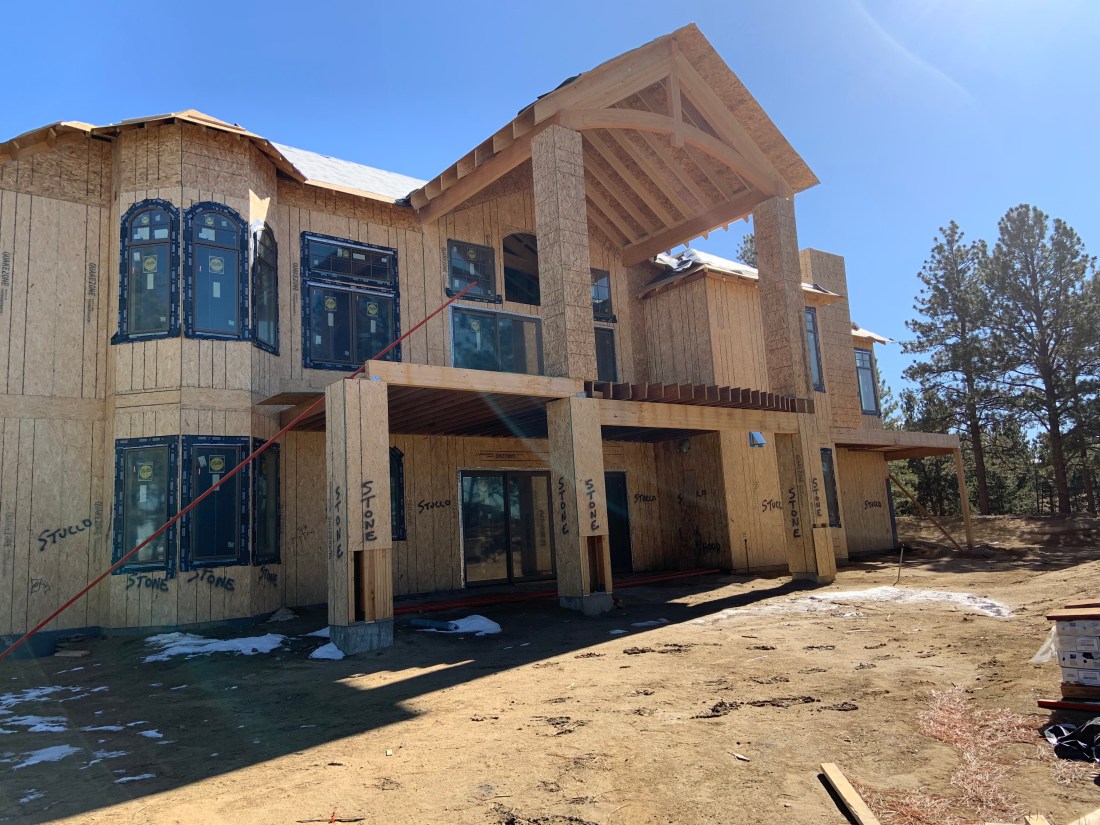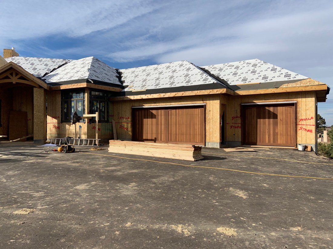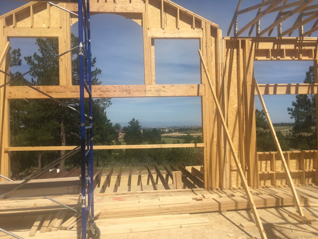 We have a turret roof! We were delighted to see our staircase turret come to life outside with the completion of the turret roof. In general, things are moving along nicely. Just before the site visit we had a project review meeting to confirm the major upcoming items and dates. Drywall starts next week and the propane tank will be filled soon….just awaiting inspection. Then the house can be heated! That’s so important when it’s winter in Denver!