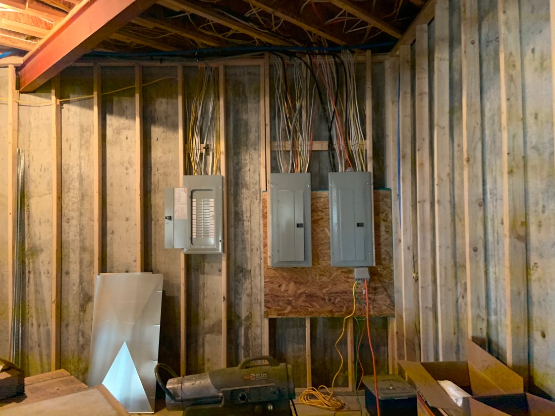 The progress is significant. Most of the plumbing work is done, electrical is moving forward fast, the ducting for the HVAC system in place, fire place boxes in place.