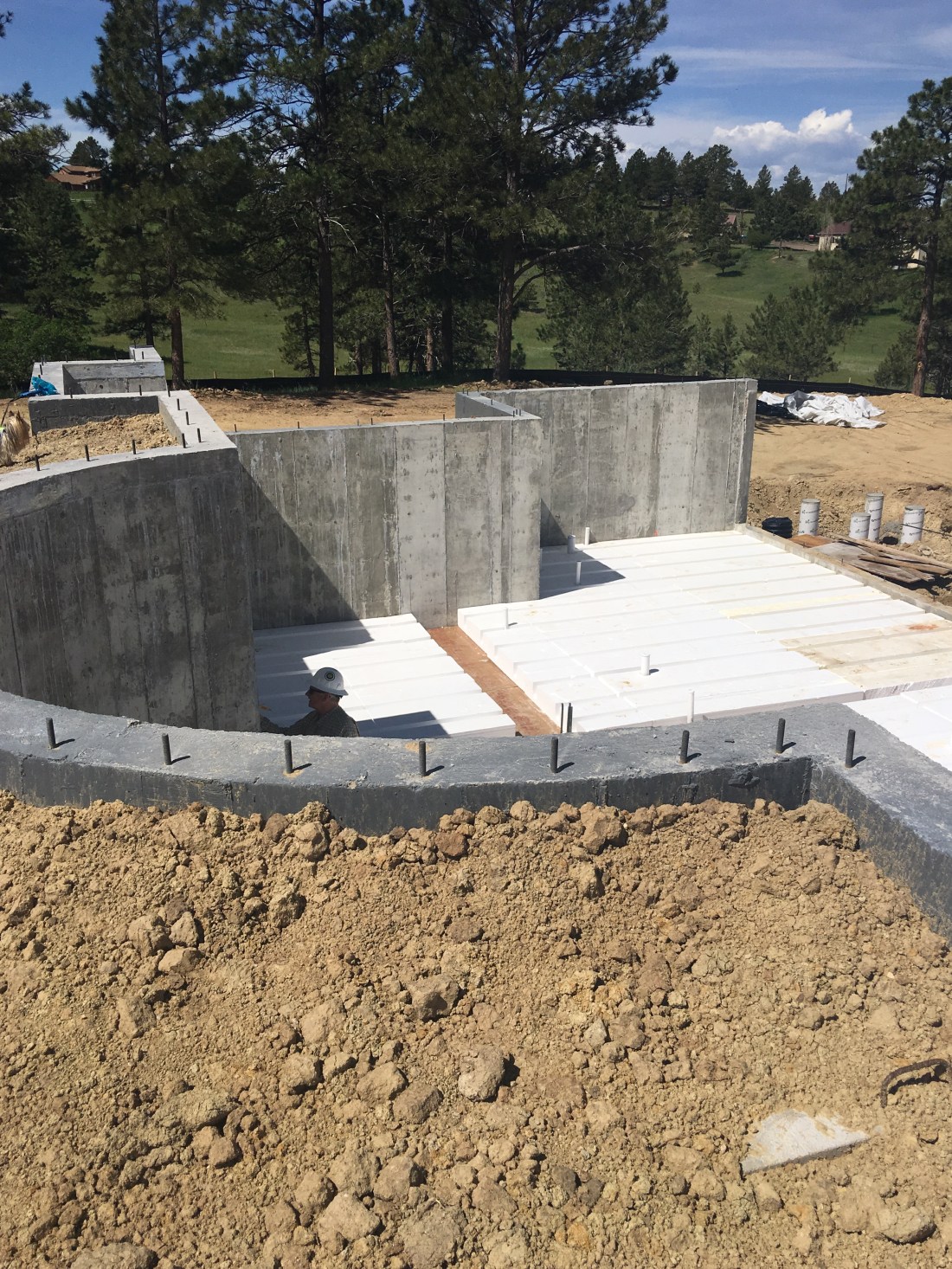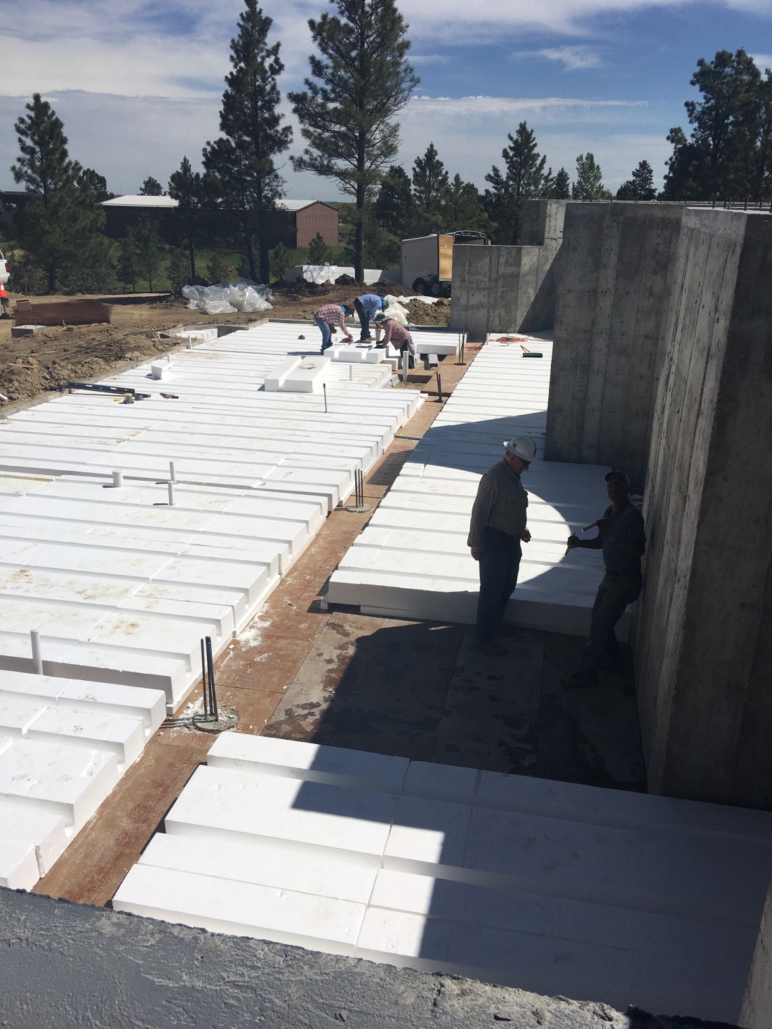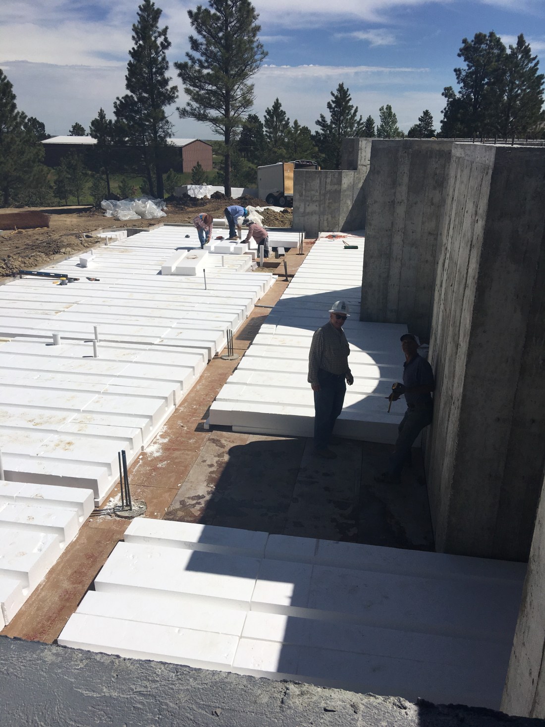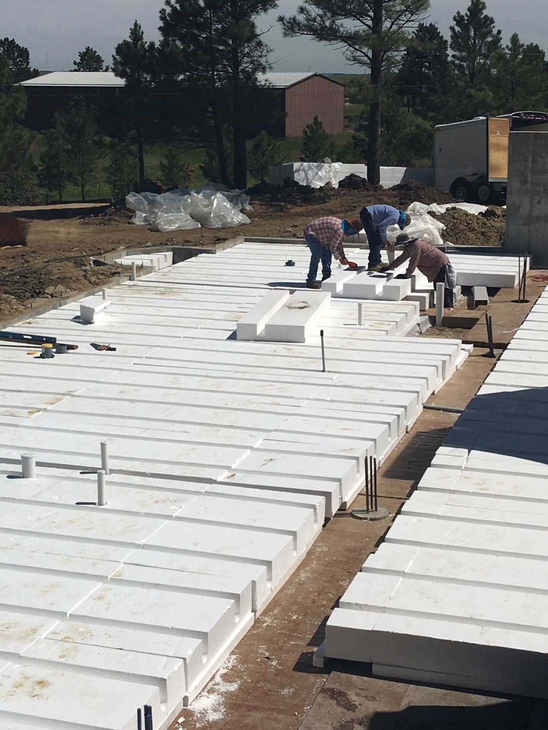 Fascinating how these forms (made from styrofoam) create a base for the rebar grid, then floor is poured. You can see that the 3 car garage floor is already poured.